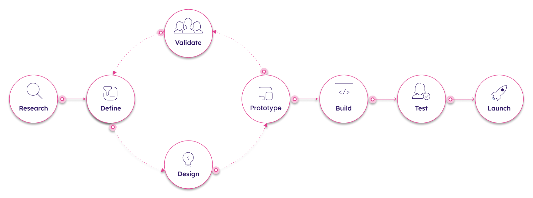 Following the design process outlined below, I was able to ensure that the vision was clear, the product was visualised in high fidelity, the process had a natural structure, ideas could be iterated within budgets, and success factors could be considered in equal measure.